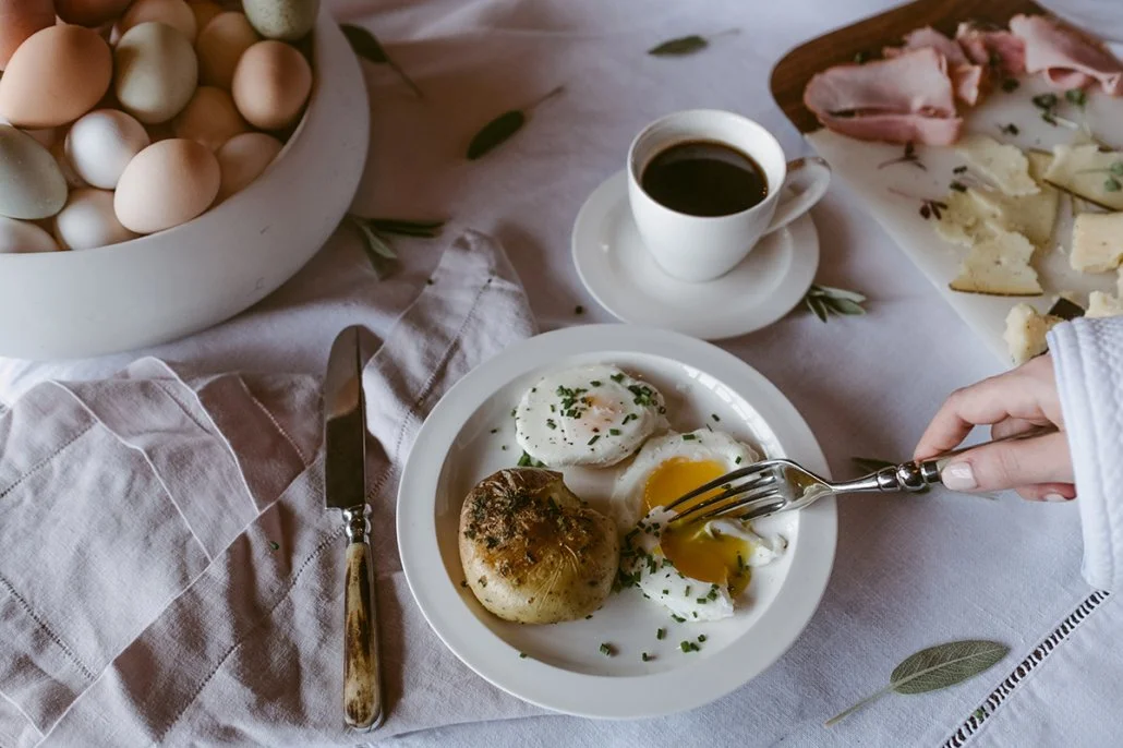 Morning: European Breakfast: Begin your day with a celebration of freshness. The thoughtfully curated European breakfast features made to order eggs, an array of artisan breads and pastries, local seasonal fruits, German style sausage and potatoes, and hand-selected cheeses. Paired with fresh juices and gourmet coffee, it is a morning ritual designed to fuel your wellness practices for the day ahead.